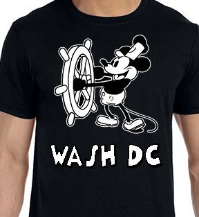 Washington DC Steamboat Willie T-shirt - Scroll down to order: Black is the stock color. When other colors are ordered it takes additional print time and sometimes the color combinations are not available. We will contact you via email and confirm any delays or shortages. Shipping is included in the price shown above. We only ship to the United States via USPS (shipping cost are often $6-8 First Class USPS).