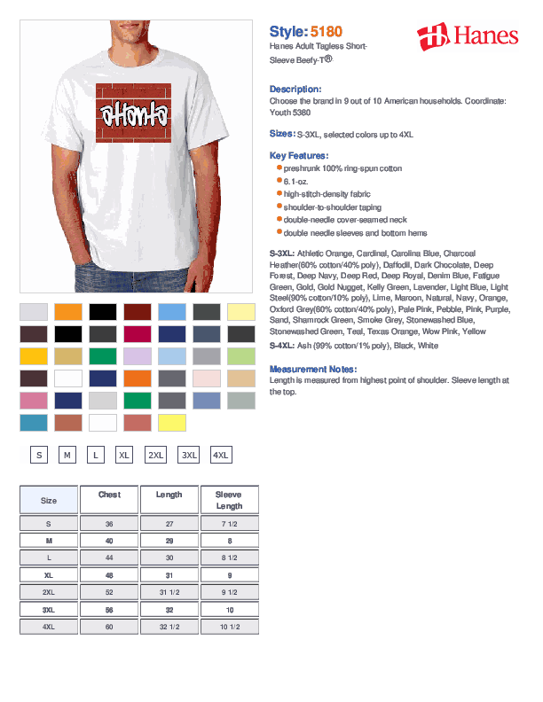> Hanes 5180 Beefy T t-shirt specifications blank or with Atlanta Georgia design