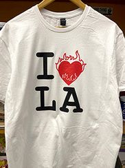 I Heart LA with Flames Los Angeles T-shirt on White - I Love LA Sales support local Clean-up efforts