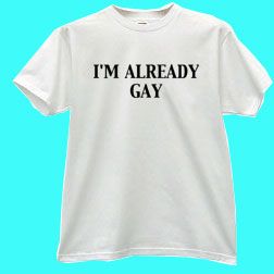 It's simple, it's to the point. Why go to all the trouble of coming out when you could just wear one of these snappy shirts? Say it loud and proud? The hell with that. Don't say it at all, save your breath and let the shirt say it for you.