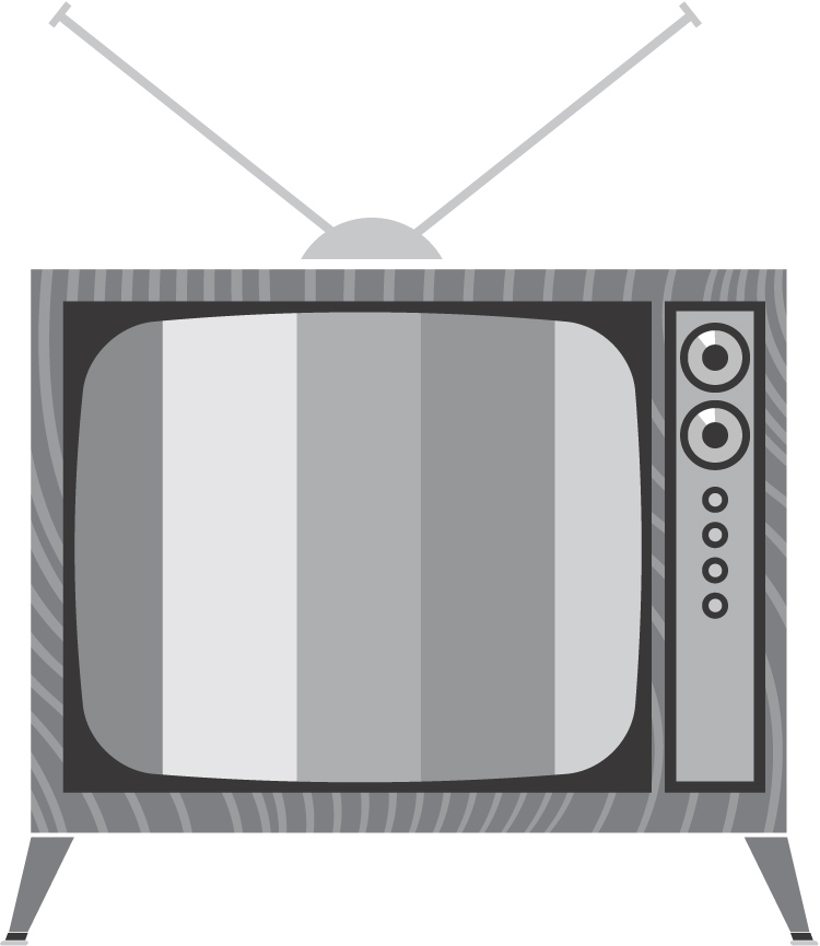 > knobs, old fashioned, tv, screened, antennae, black and white, shaded