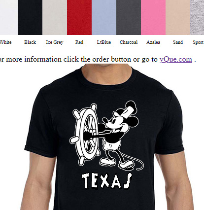 Texas Steamboat Willie T-shirts on other Color Shirts